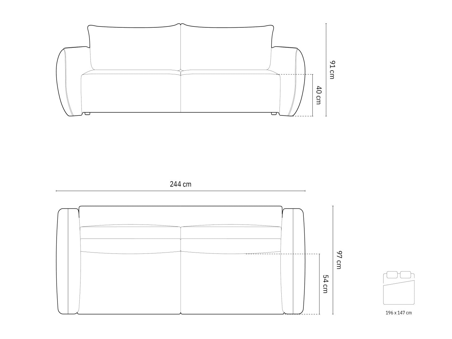 Sėdimosios dalies plotis196 cm