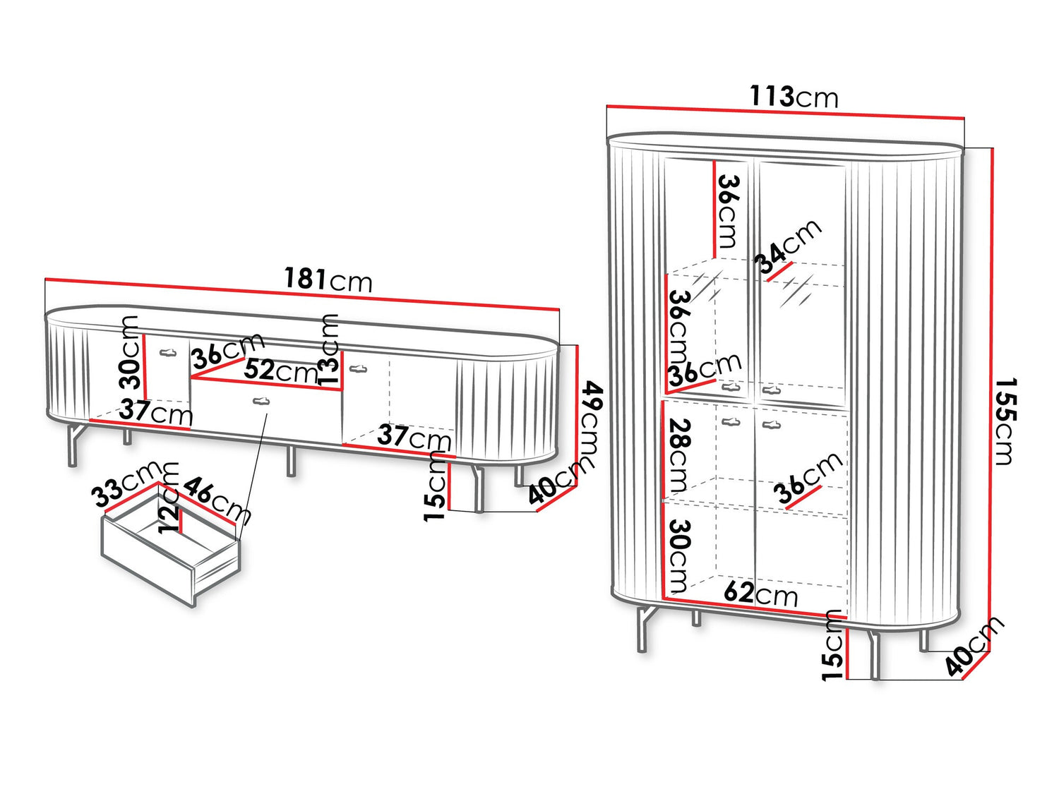 TV stalo matmenys49 x 181 x 40 cm