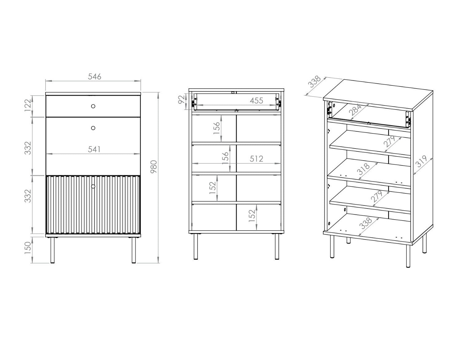 Batų dėžės tipasSu stalčiais