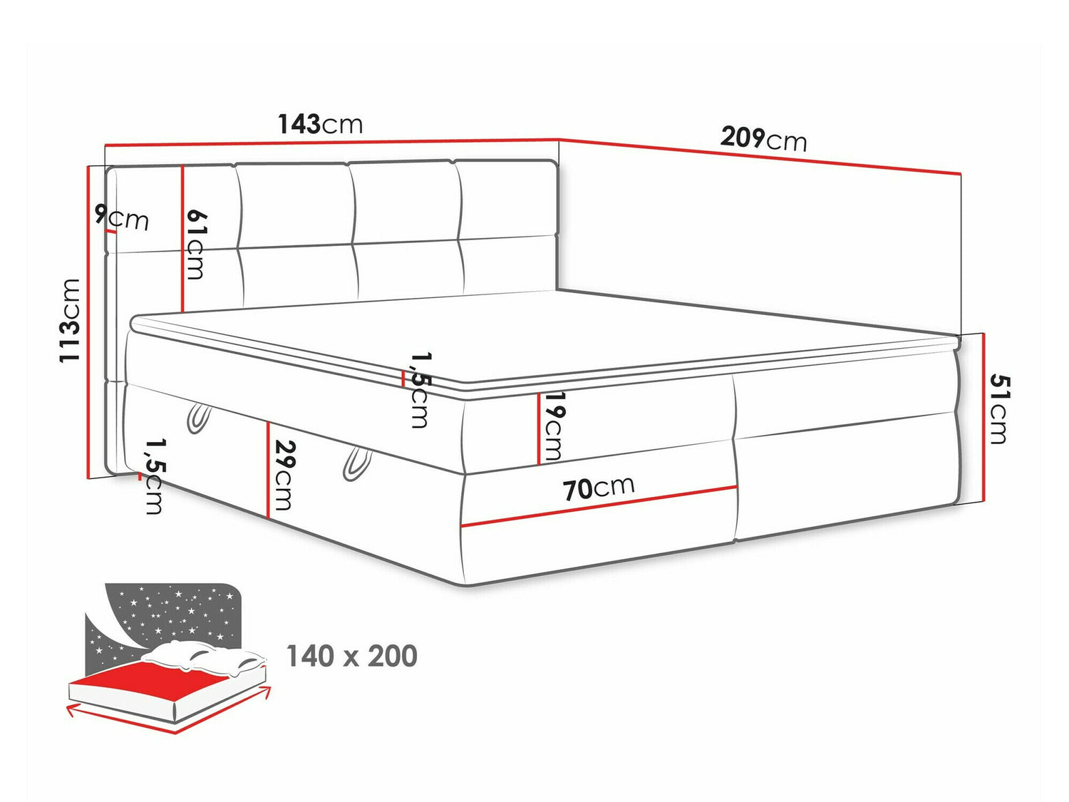 Galvūgalio matmenys113 x 143 x 9 cm