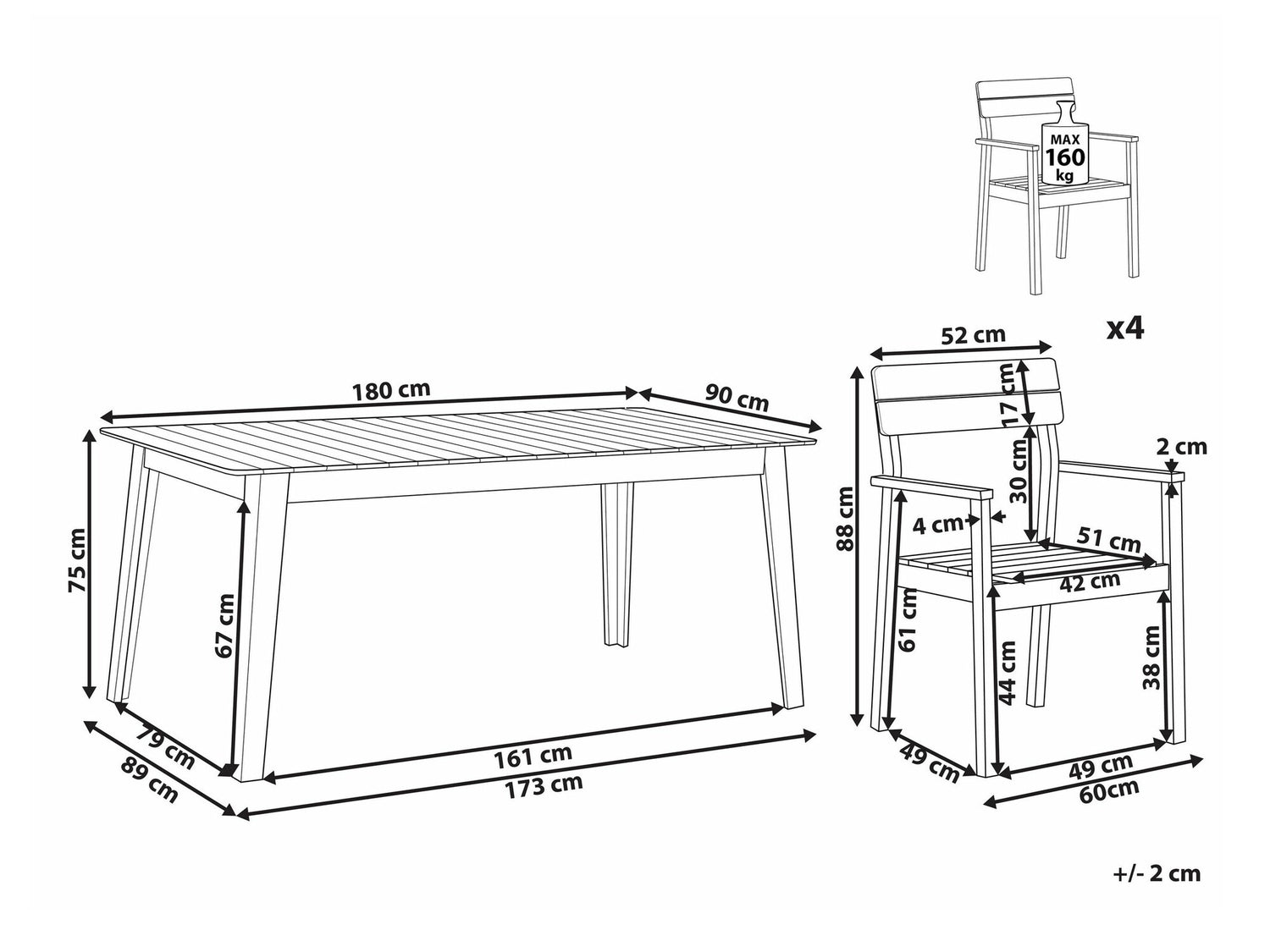 Maksimalus išlaikomas svoris asmeniui160 kg