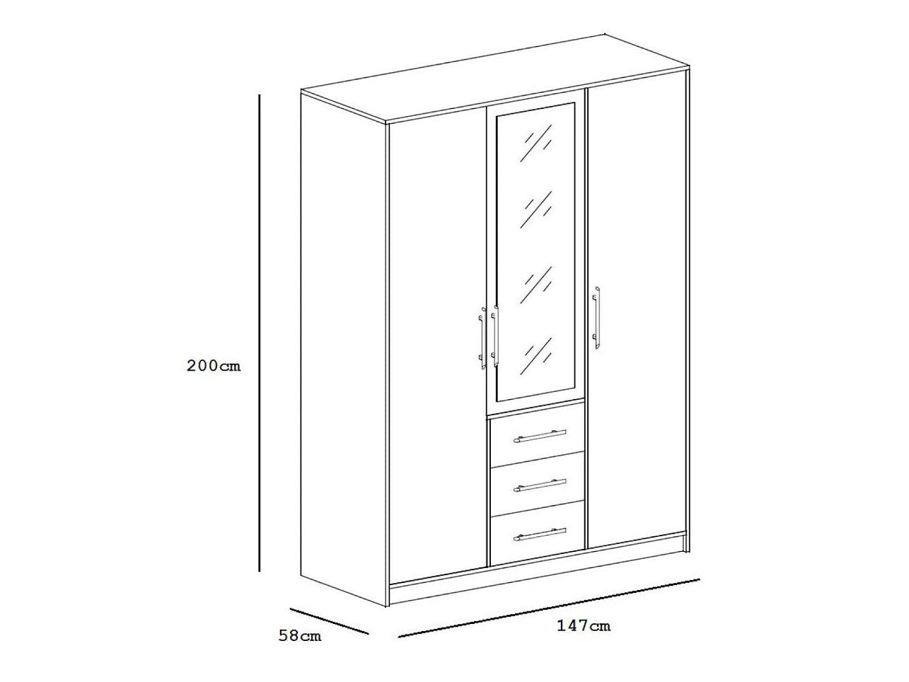 Spintos matmenys200 x 147 x 58 cm