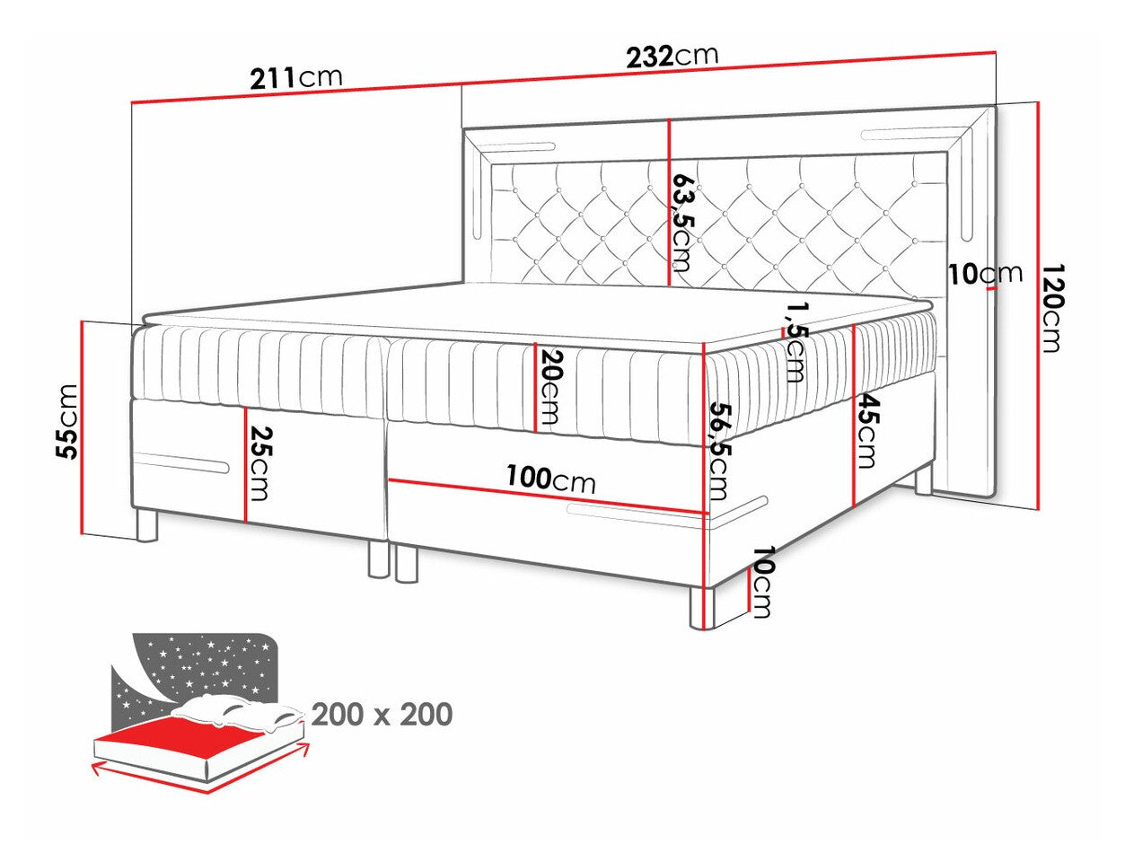 Pritaikyta čiužiniui200 x 200 cm
