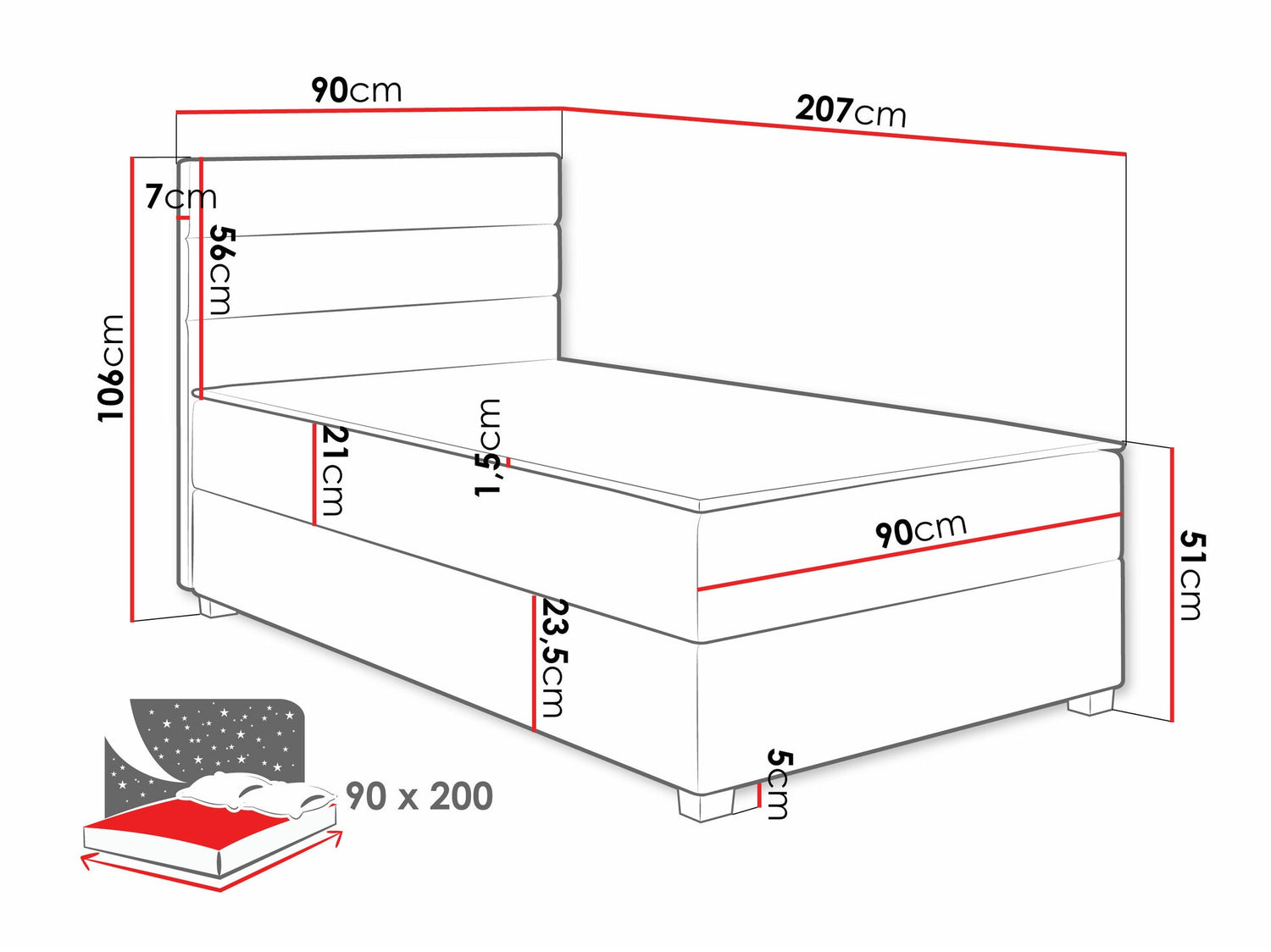 90 x 200 cm