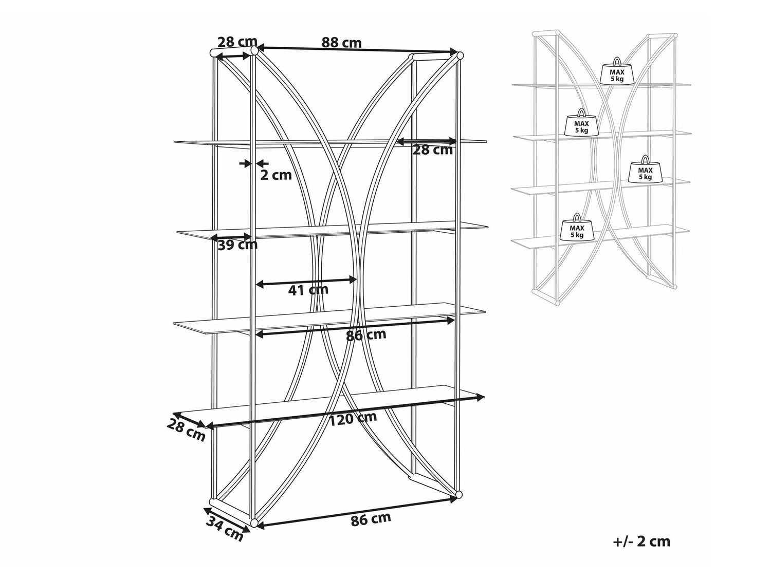 Maksimalus išlaikomas svoris lentynėlei5 kg
