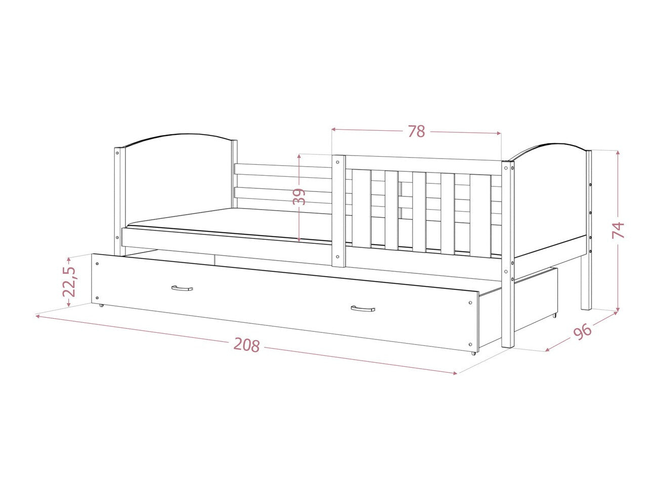 Pritaikyta čiužiniui90 x 200 cm