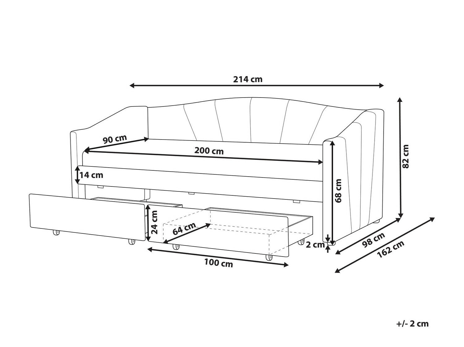 Pritaikyta čiužiniui90 x 200 cm