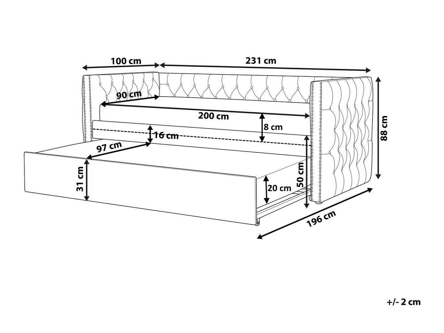 Gulimos dalies aukštis50 cm