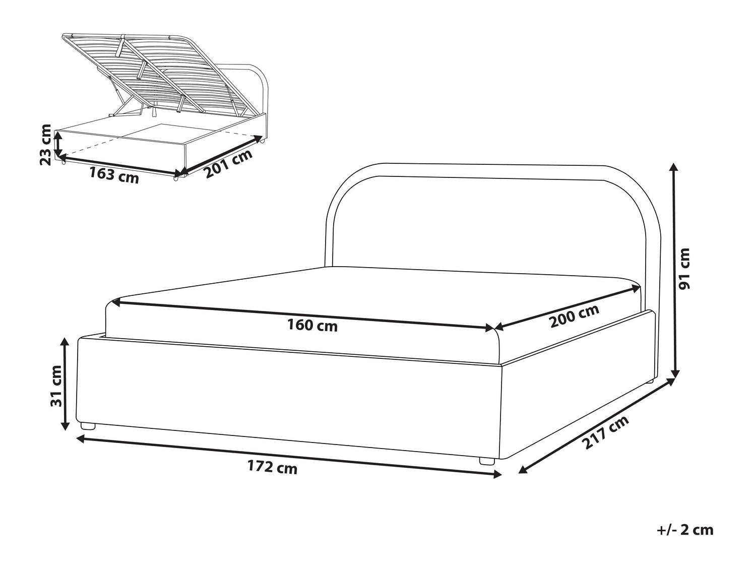 Patalynės dėžės matmenys23 x 163 x 201 cm