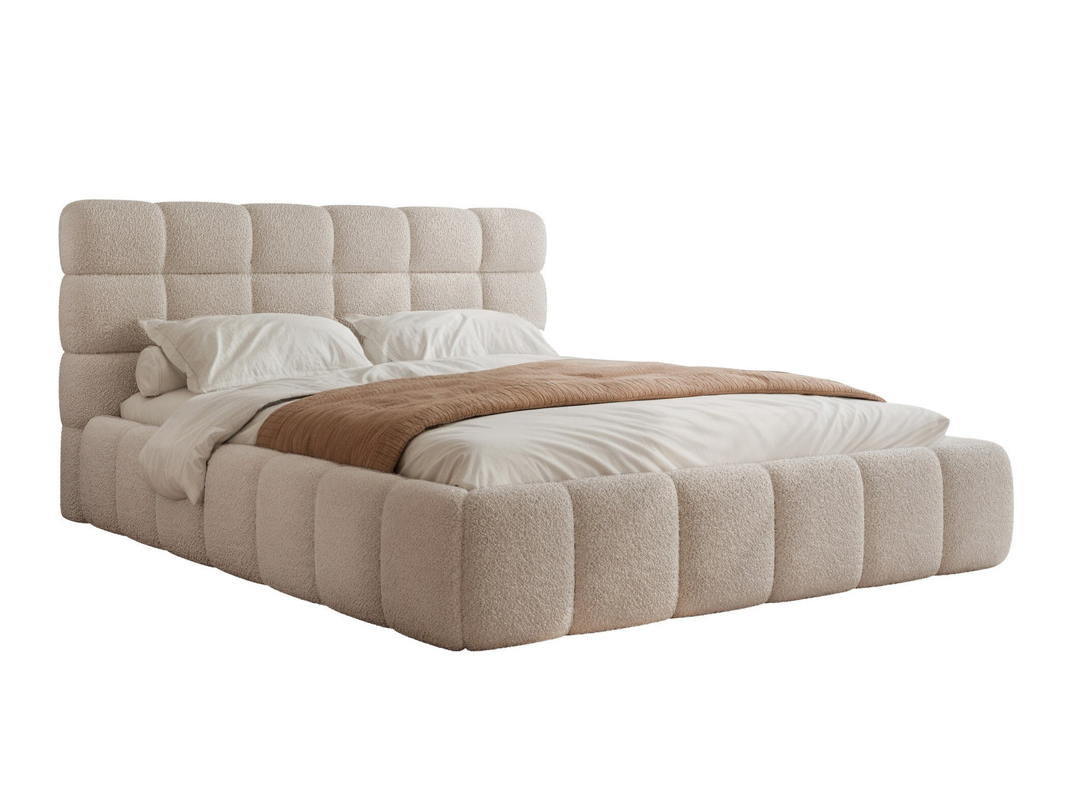 „Boucle“ (Bouclé) audinys išsiskiria unikaliu tekstūriniu raštu, kurį sukuria skirtingų dydžių kilpos ir mazgai. Ši savybė suteikia baldams išskirtinio charakterio ir jaukumo. Audinio paviršius gali būti švelnus arba primenantis vilną. Dėl savo tvirtos struktūros audinys puikiai išlaiko formą, todėl idealiai tinka sofoms, foteliams ar kitiems baldams. Jei siekiate sukurti rafinuotą ir modernią erdvę – šis audinys yra puikus pasirinkimas.