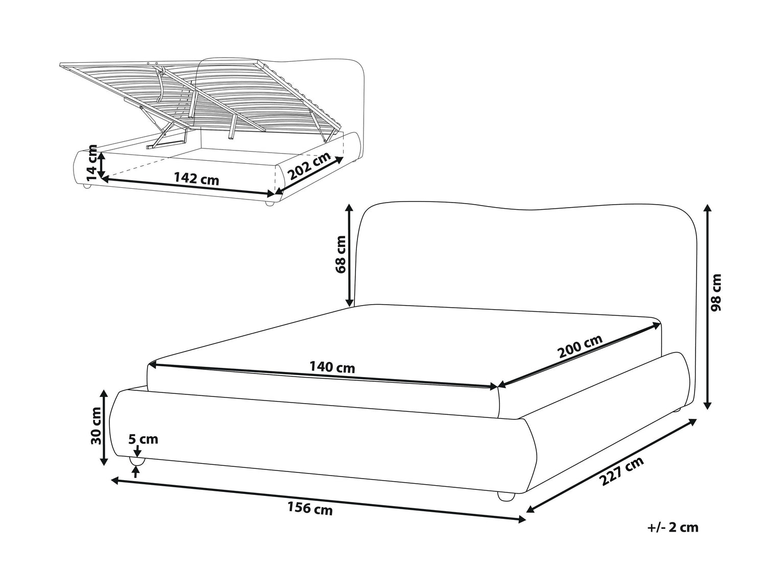 Patalynės dėžės matmenys14 x 142 x 202 cm