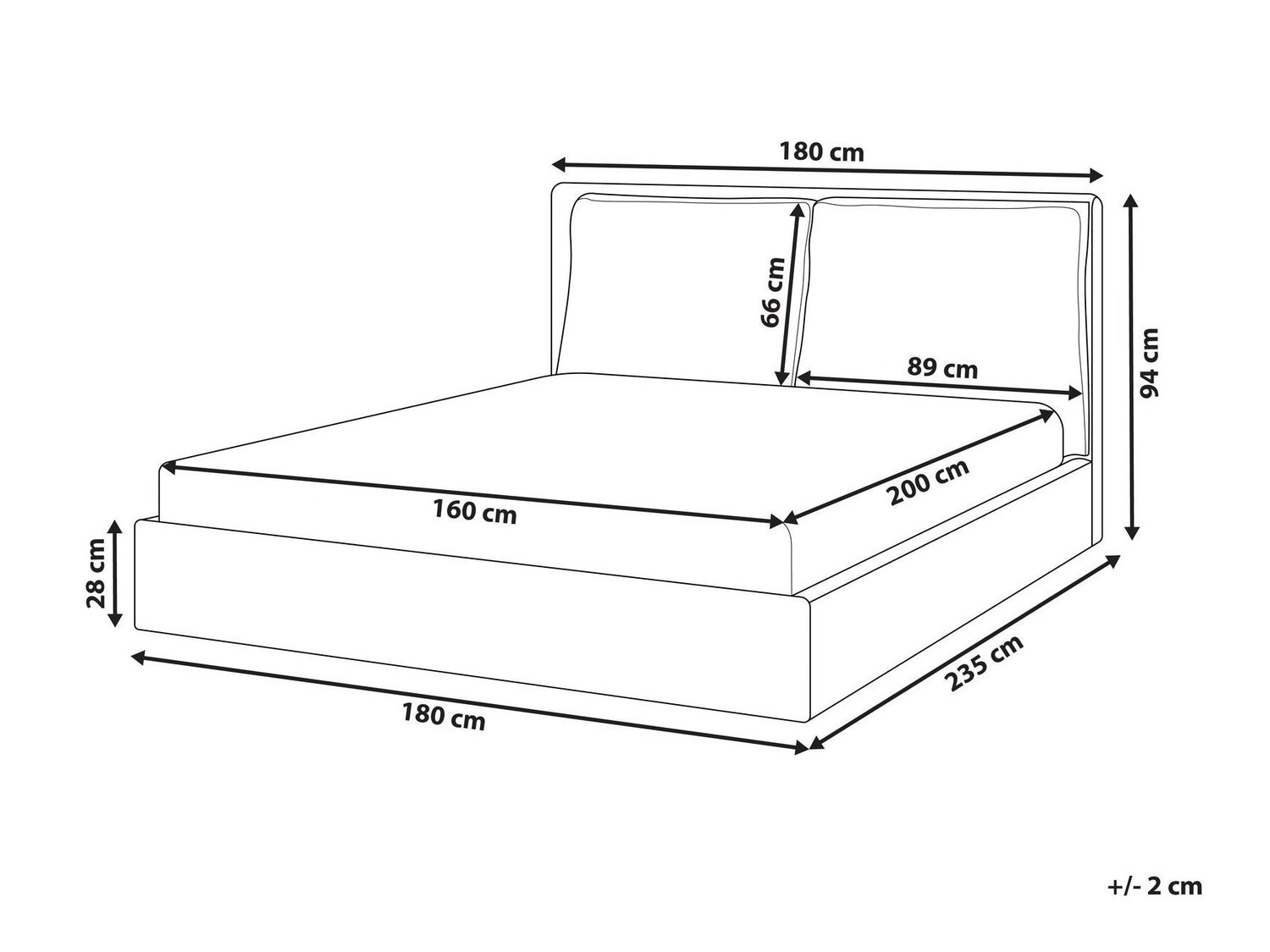 Pritaikyta čiužiniui160 x 200 cm