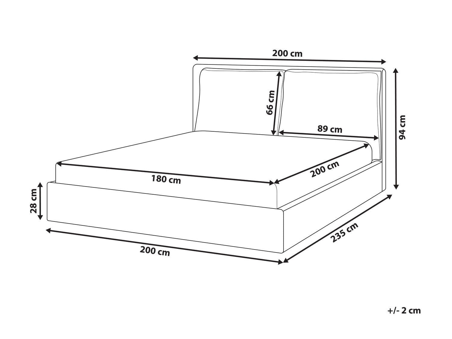 Pritaikyta čiužiniui180 x 200 cm