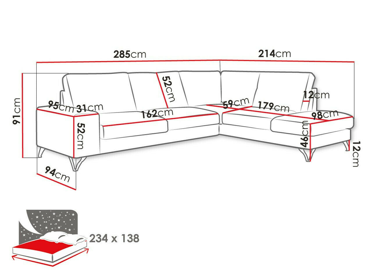 Miegamosios dalies ilgis234 cm