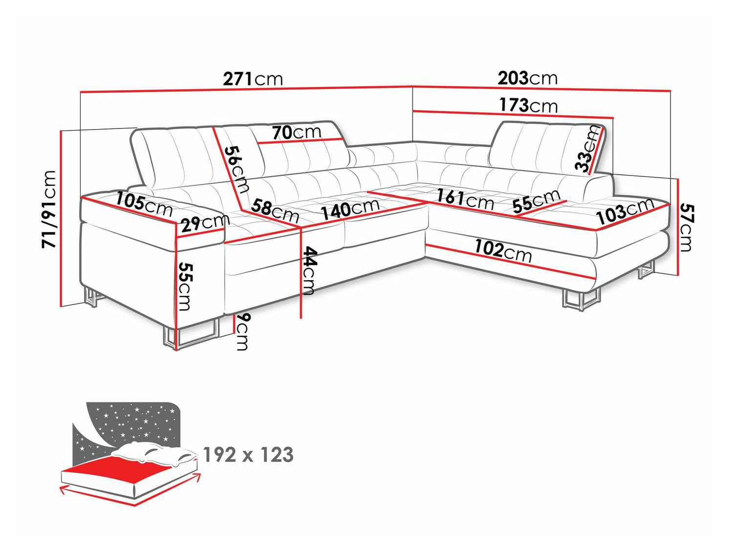 Miegamosios dalies ilgis192 cm