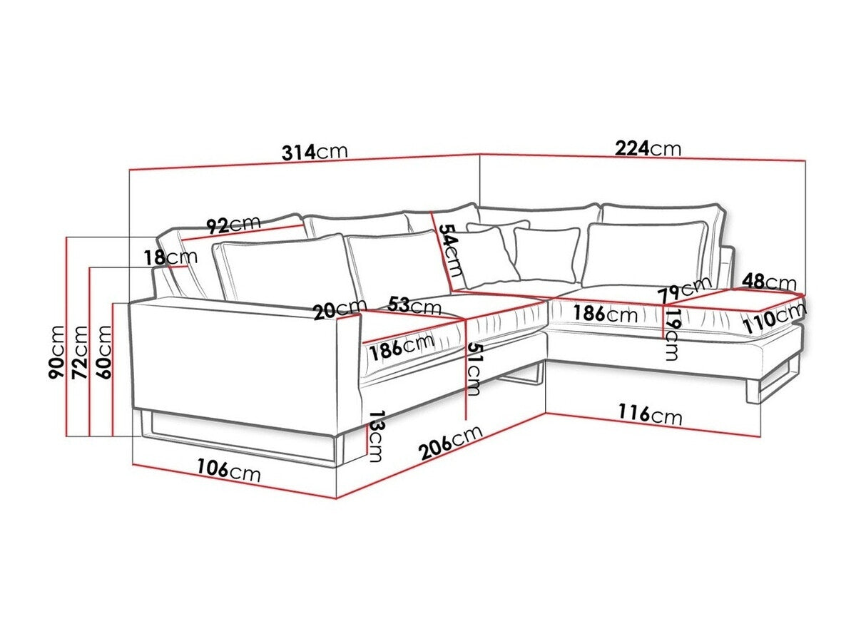 Žiūrint iš priekio, dešininio varianto atsikišusi dalis jums bus iš dešinės pusės. Pasirinktas kampo variantas turėtų padėti kambariui atsiskleisti ir leisti organiškai judėti erdvėje.