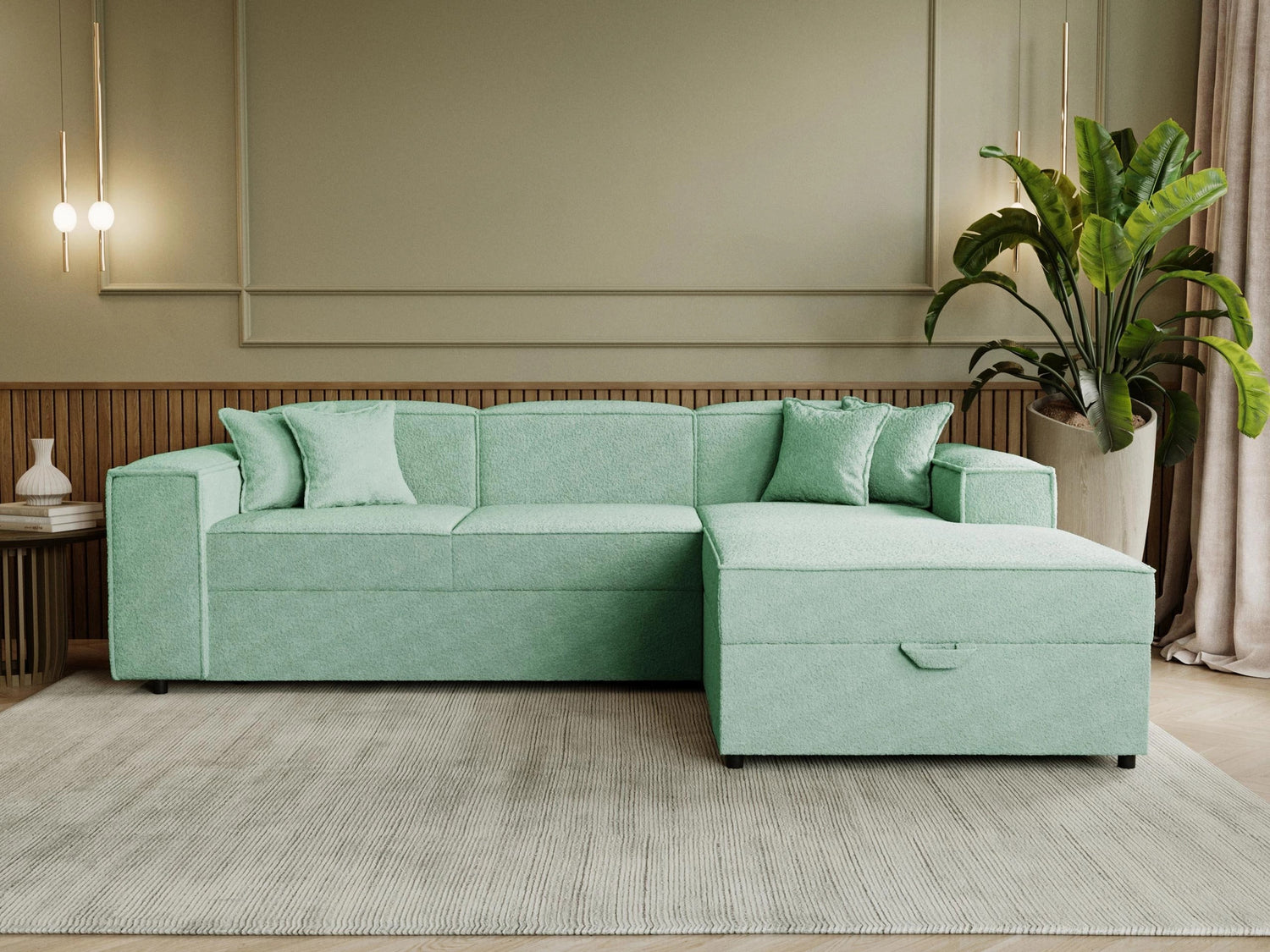 Žiūrint iš priekio, dešininio varianto atsikišusi dalis jums bus iš dešinės pusės. Pasirinktas kampo variantas turėtų padėti kambariui atsiskleisti ir leisti organiškai judėti erdvėje.