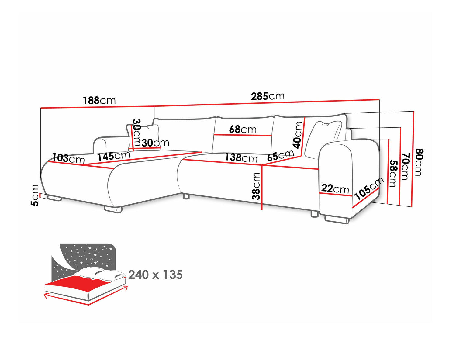 Miegamosios dalies ilgis240 cm