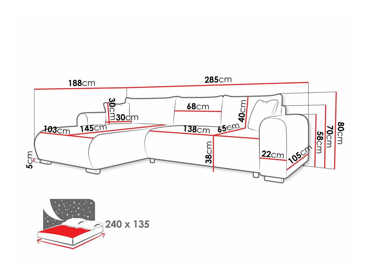 Miegamosios dalies ilgis240 cm