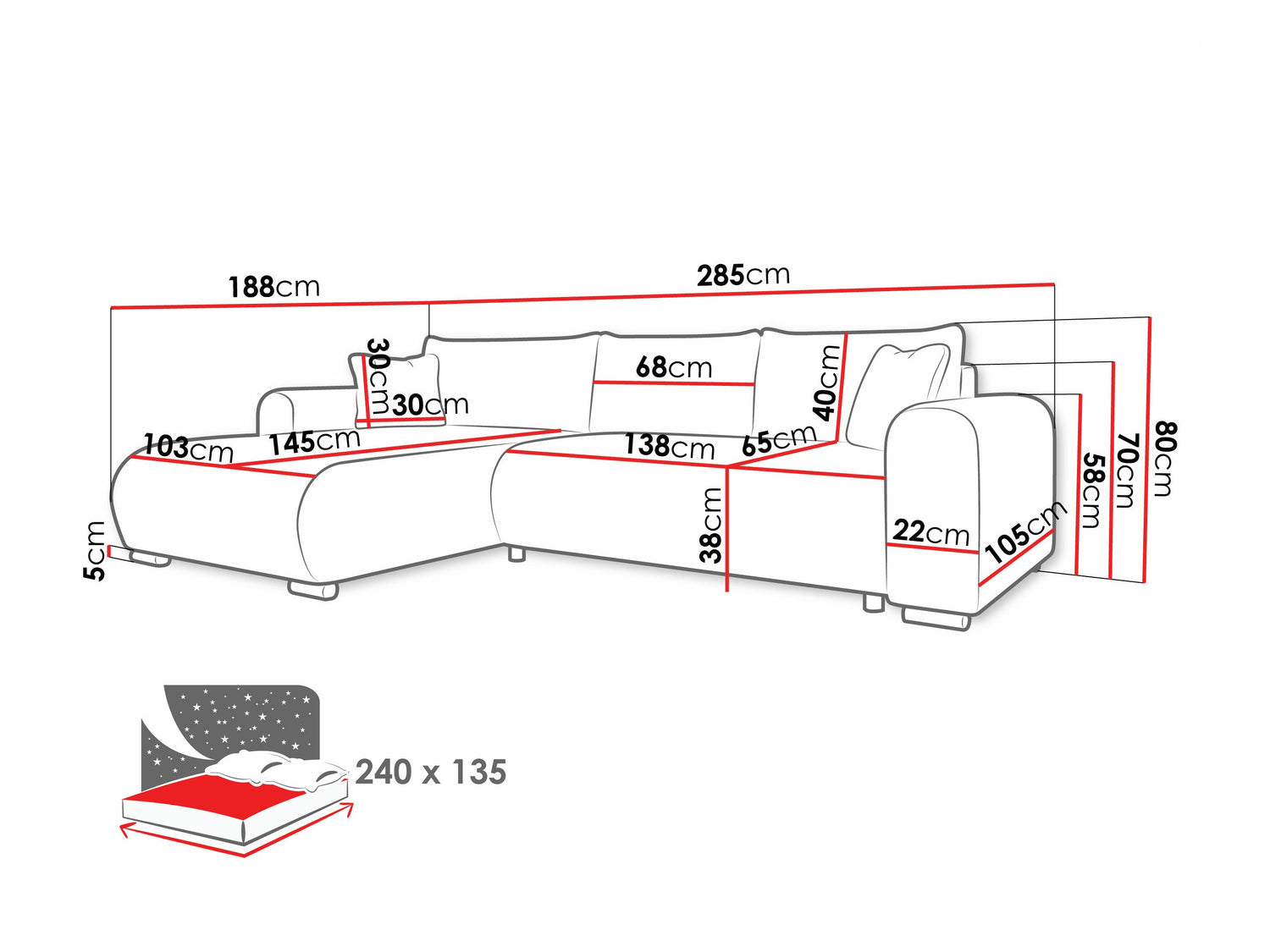 Miegamosios dalies ilgis240 cm