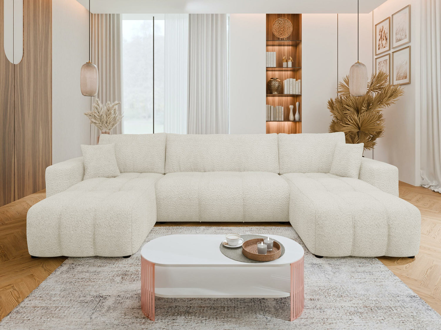 „Boucle“ (Bouclé) audinys išsiskiria unikaliu tekstūriniu raštu, kurį sukuria skirtingų dydžių kilpos ir mazgai. Ši savybė suteikia baldams išskirtinio charakterio ir jaukumo. Audinio paviršius gali būti švelnus arba primenantis vilną. Dėl savo tvirtos struktūros audinys puikiai išlaiko formą, todėl idealiai tinka sofoms, foteliams ar kitiems baldams. Jei siekiate sukurti rafinuotą ir modernią erdvę – šis audinys yra puikus pasirinkimas.