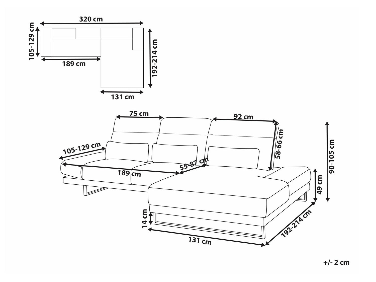 Sėdimosios dalies storis25 cm
