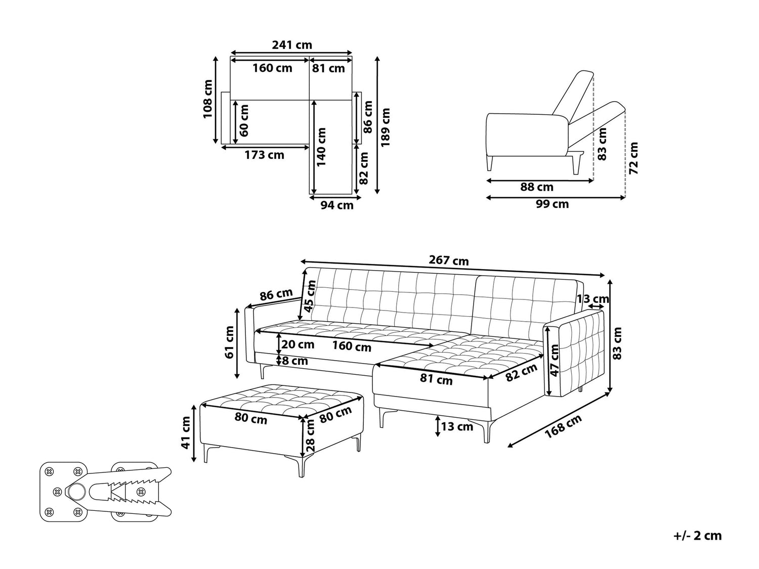 Pufo matmenys41 x 80 x 80 cm