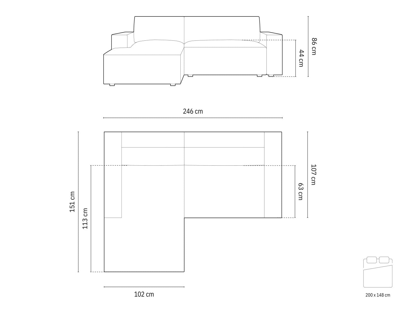 Miegamosios dalies plotis148 cm