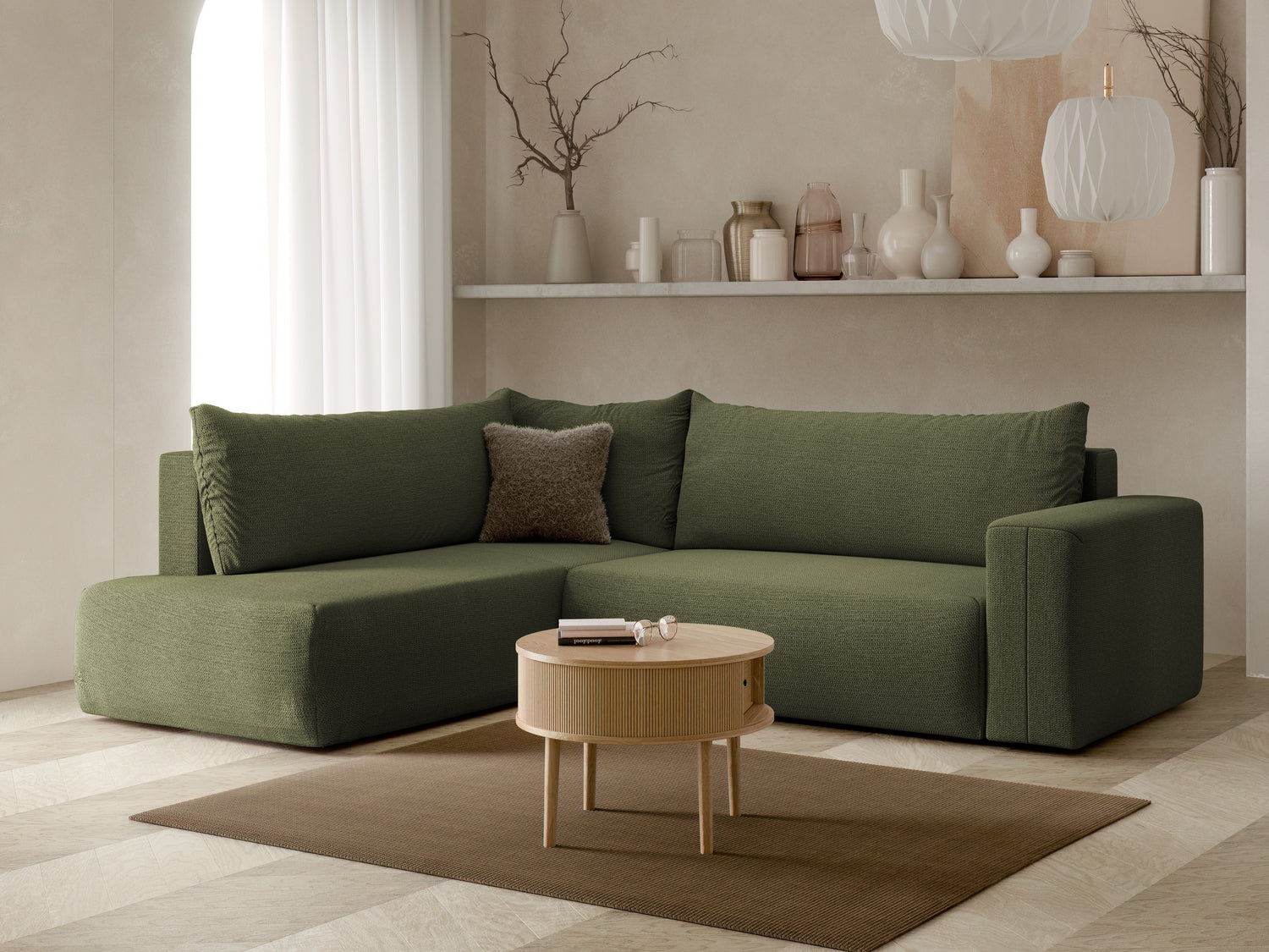 Žiūrint iš priekio, kairinio varianto atsikišusi dalis jums bus iš kairės pusės. Pasirinktas kampo variantas turėtų padėti kambariui atsiskleisti ir leisti organiškai judėti erdvėje.