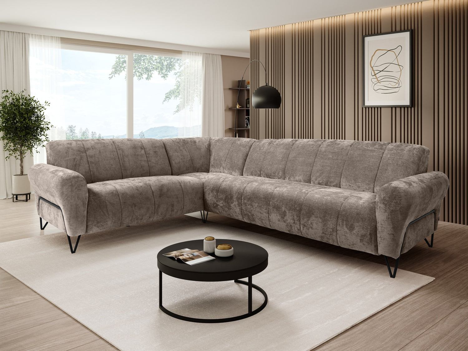 Žiūrint iš priekio, kairinio varianto atsikišusi dalis jums bus iš kairės pusės. Pasirinktas kampo variantas turėtų padėti kambariui atsiskleisti ir leisti organiškai judėti erdvėje.