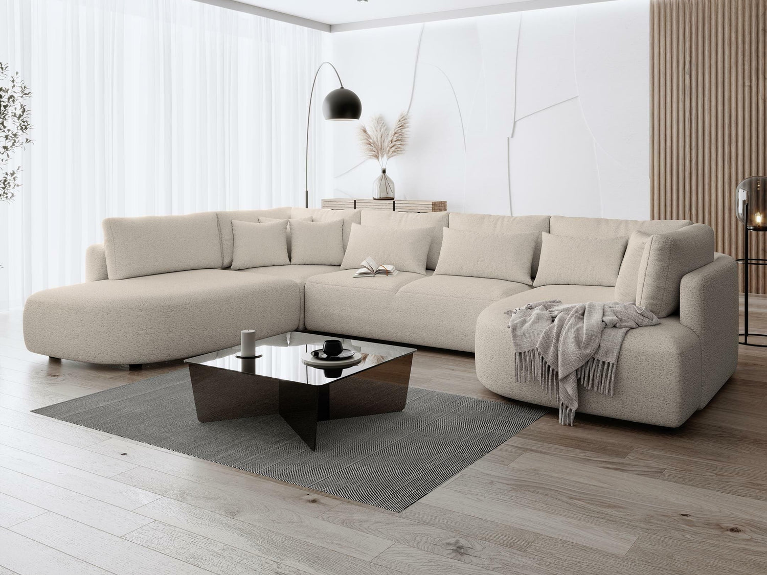 Nugarinės baldo dalies audinys nesiskiria nuo pagrindinio baldo audinio. Šia savybe pasižyminčius baldus galite statyti kambario viduryje.