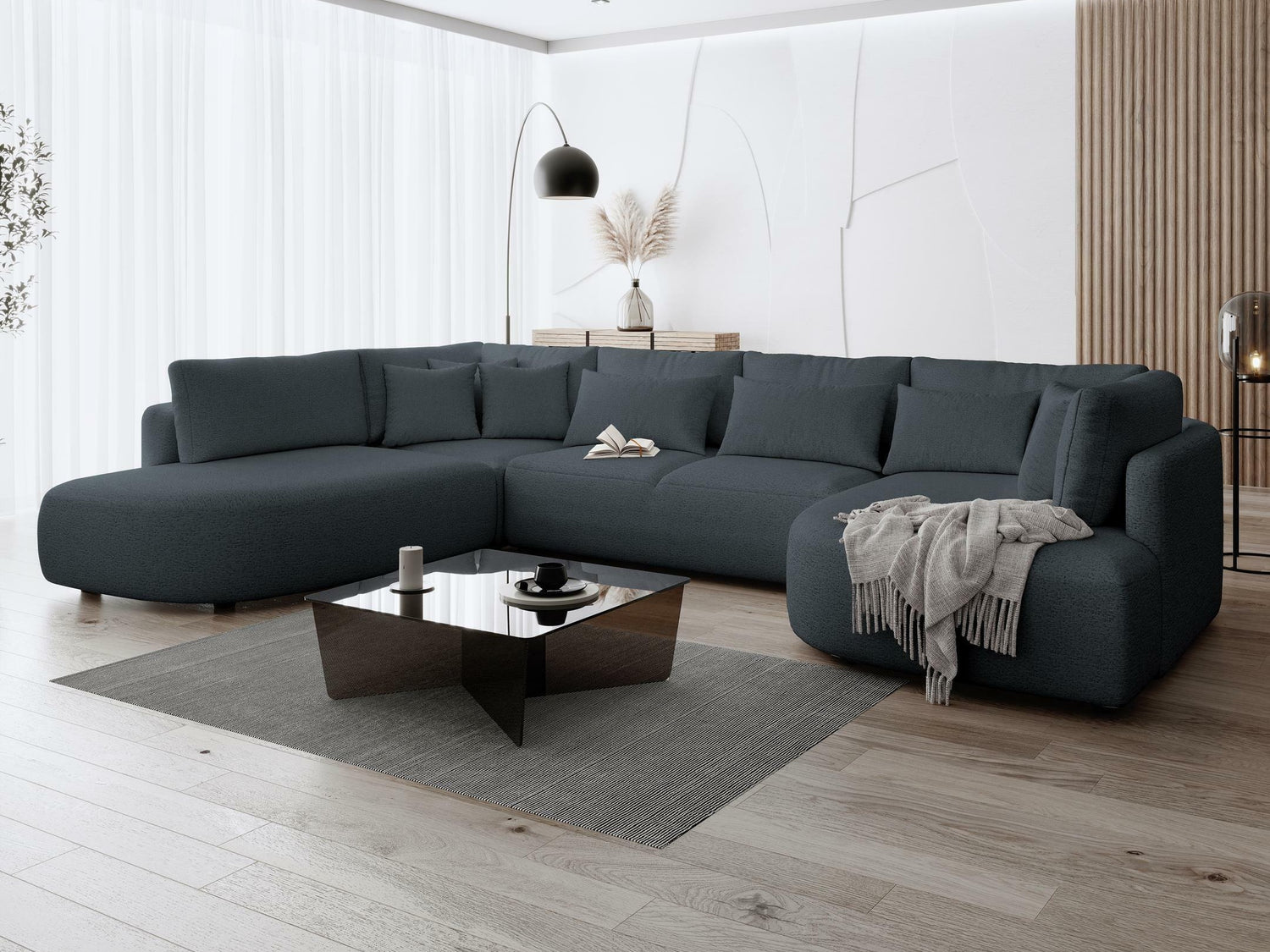 Nugarinės baldo dalies audinys nesiskiria nuo pagrindinio baldo audinio. Šia savybe pasižyminčius baldus galite statyti kambario viduryje.