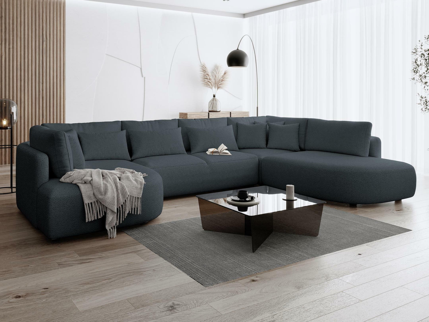 Nugarinės baldo dalies audinys nesiskiria nuo pagrindinio baldo audinio. Šia savybe pasižyminčius baldus galite statyti kambario viduryje.