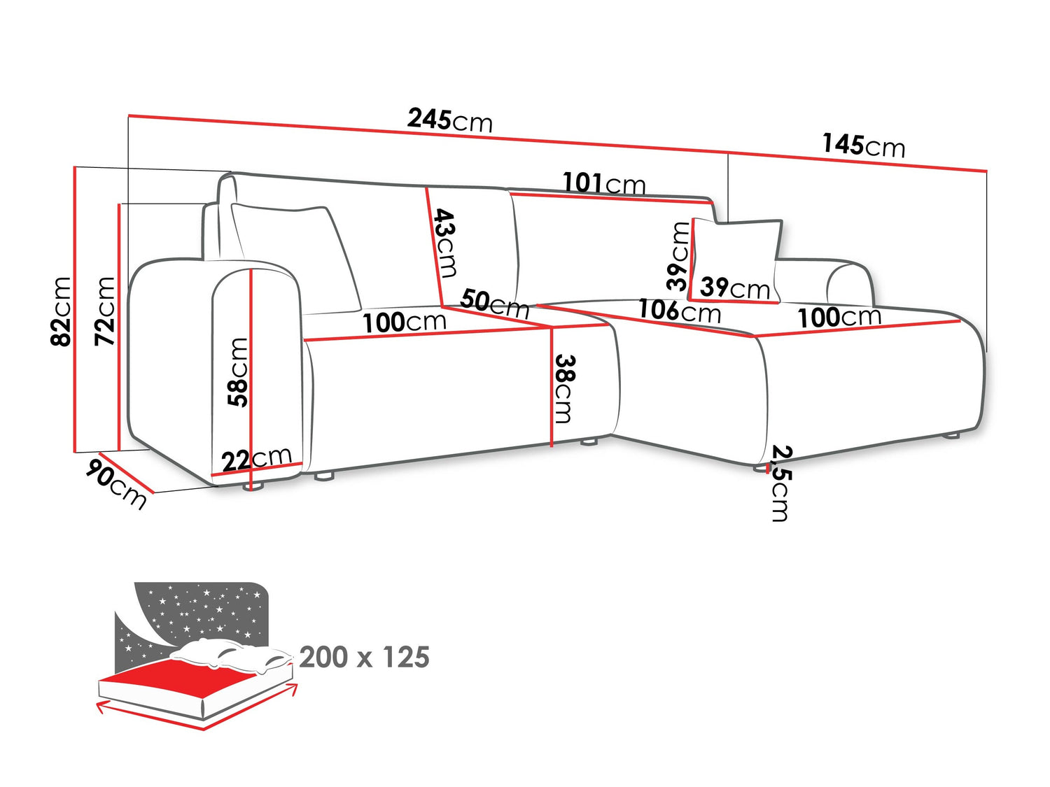 22 x 98 x 61 cm