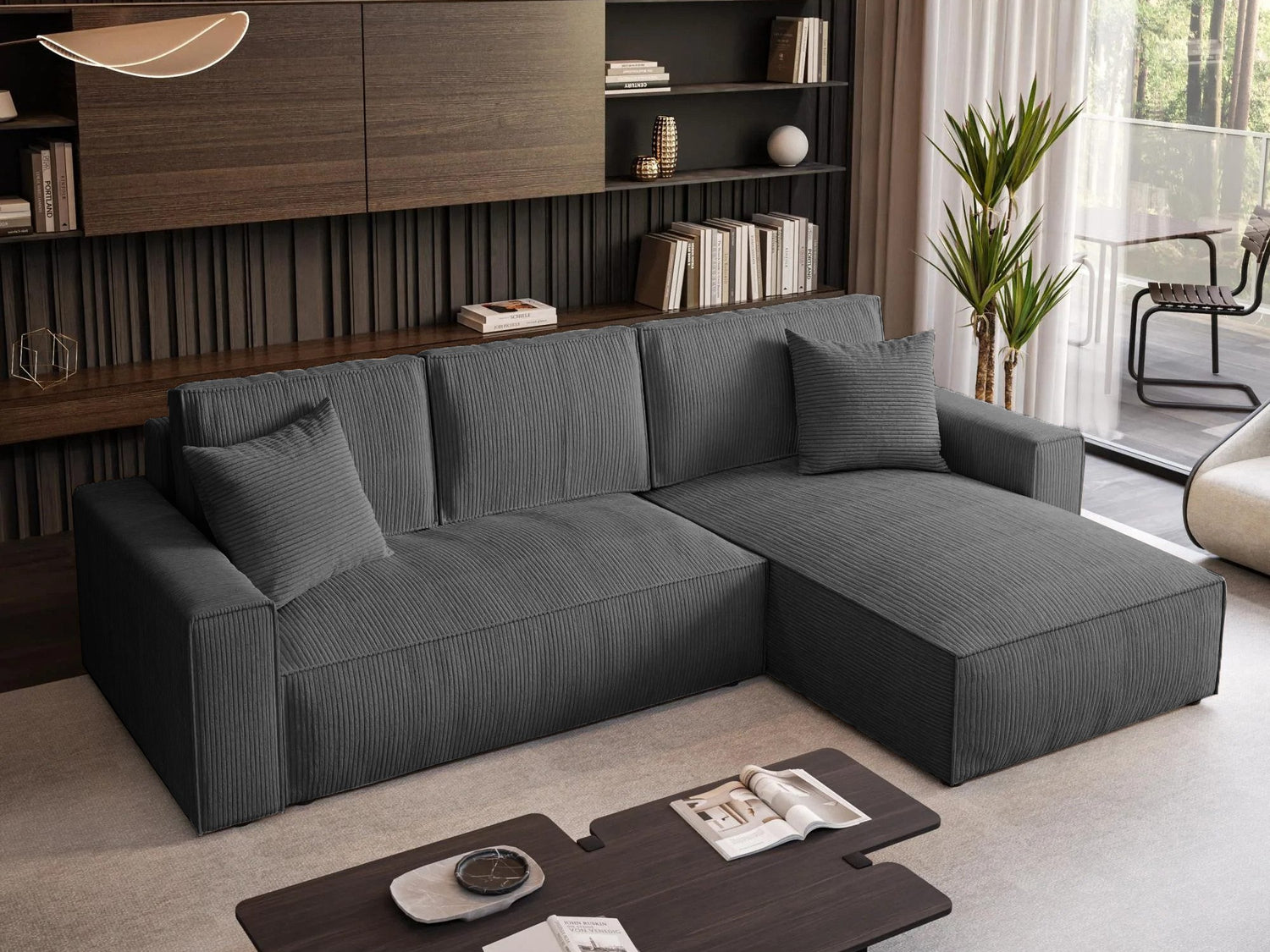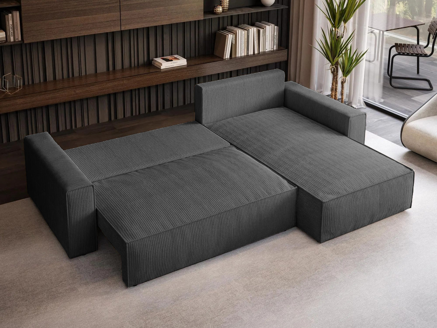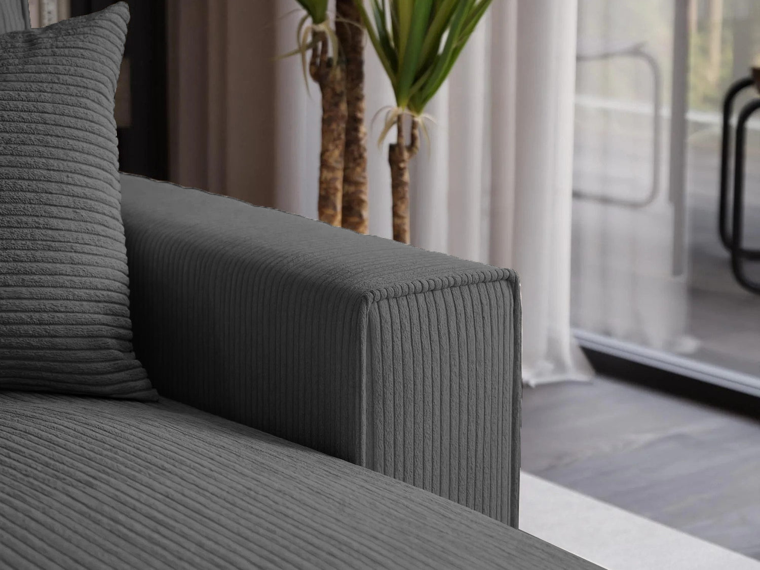 Nugarinės baldo dalies audinys nesiskiria nuo pagrindinio baldo audinio. Šia savybe pasižyminčius baldus galite statyti kambario viduryje.