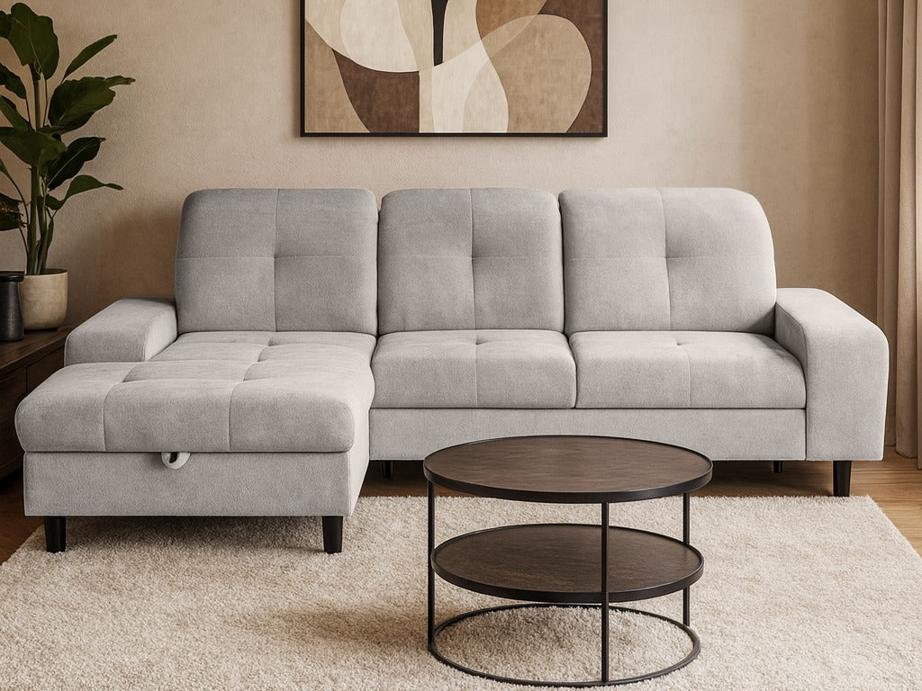 Žiūrint iš priekio, kairinio varianto atsikišusi dalis jums bus iš kairės pusės. Pasirinktas kampo variantas turėtų padėti kambariui atsiskleisti ir leisti organiškai judėti erdvėje.