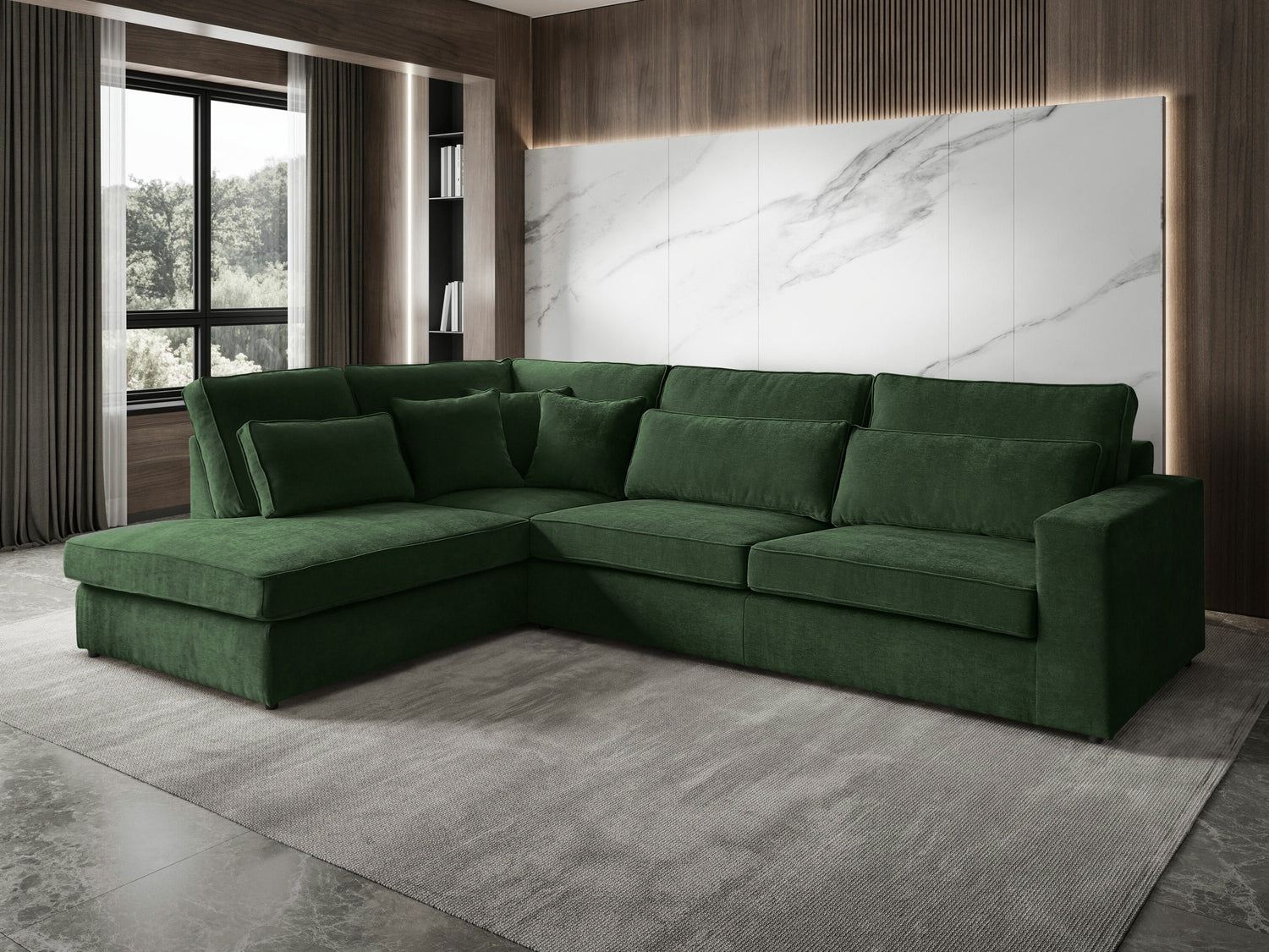 Žiūrint iš priekio, kairinio varianto atsikišusi dalis jums bus iš kairės pusės. Pasirinktas kampo variantas turėtų padėti kambariui atsiskleisti ir leisti organiškai judėti erdvėje.