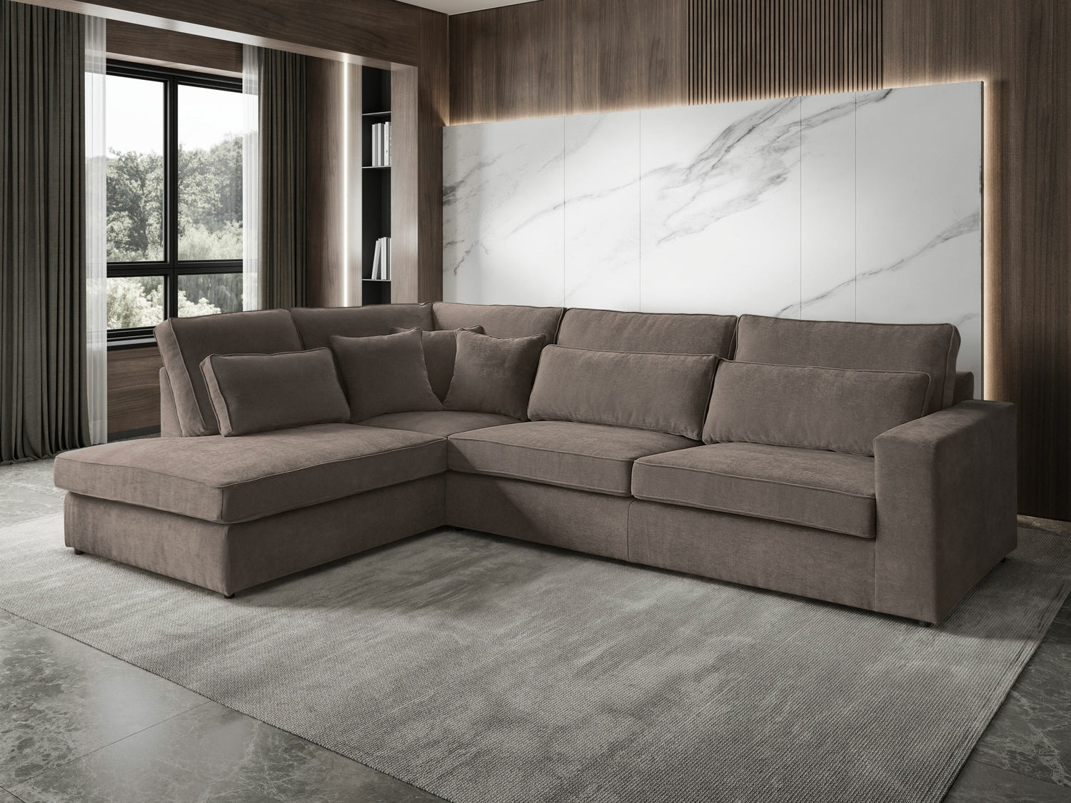 Žiūrint iš priekio, kairinio varianto atsikišusi dalis jums bus iš kairės pusės. Pasirinktas kampo variantas turėtų padėti kambariui atsiskleisti ir leisti organiškai judėti erdvėje.