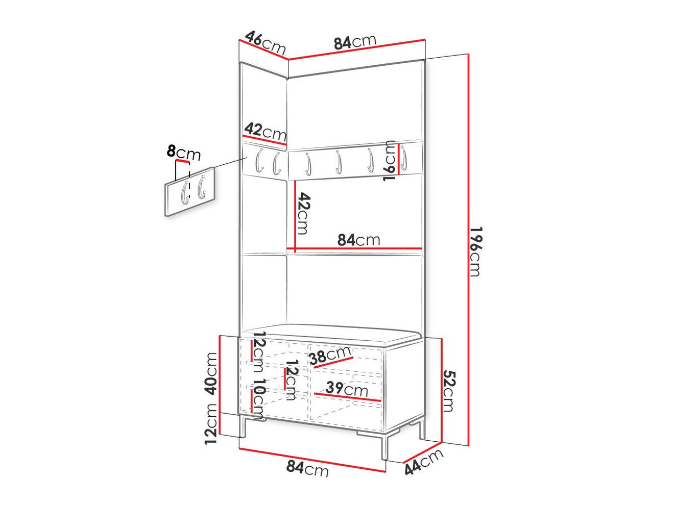 16 x 84 x 8 x 42 x 8 cm