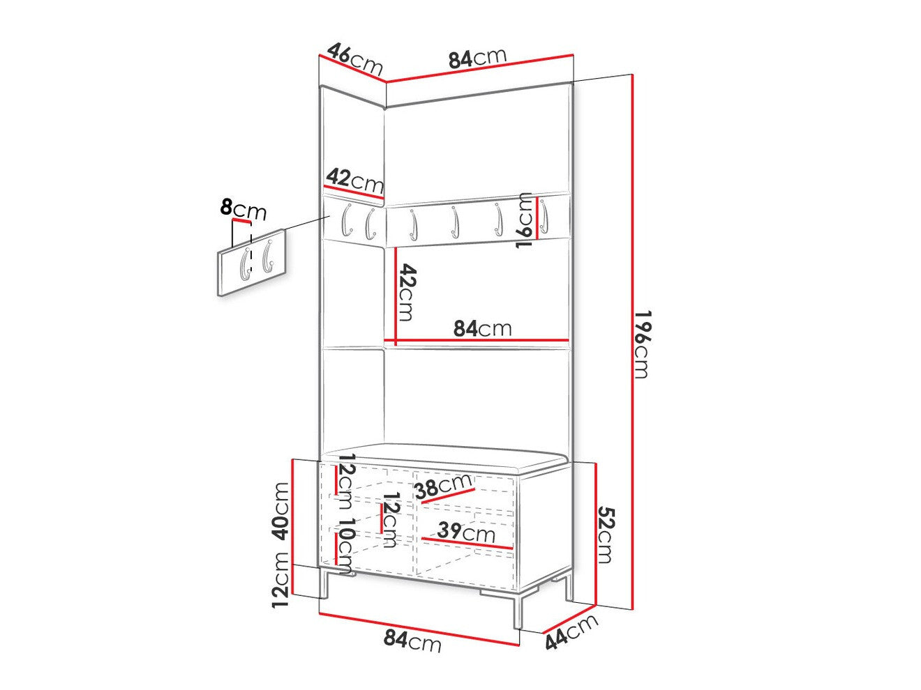 16 x 84 x 8 x 42 x 8 cm