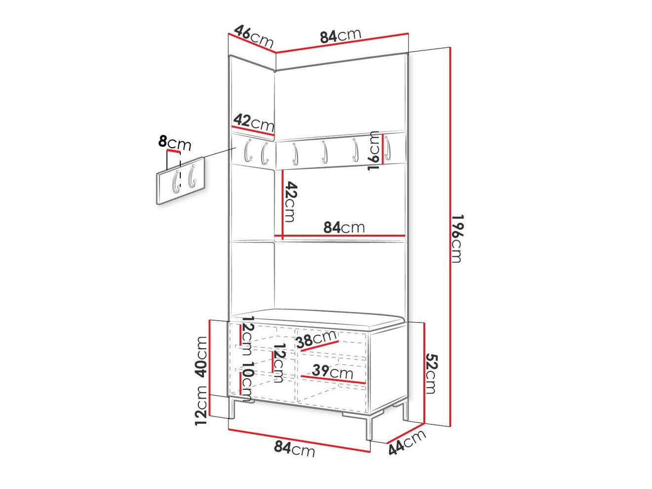 16 x 84 x 8 x 42 x 8 cm