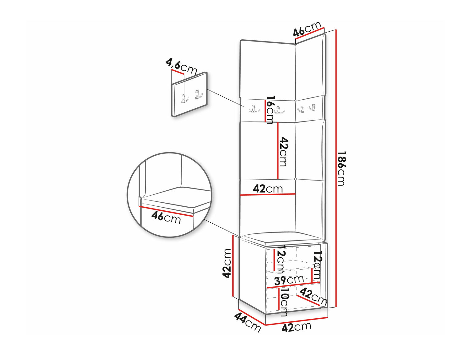 Batų dėžės matmenys42 x 42 x 46 cm