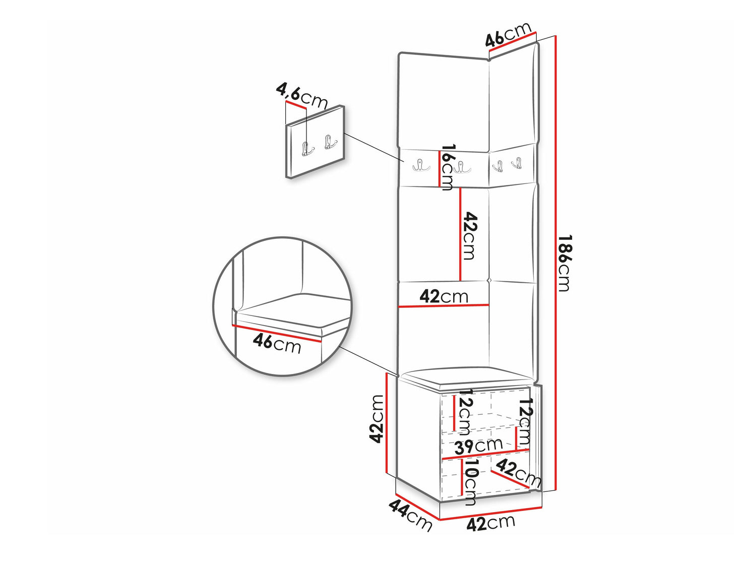 16 x 42 x 4.6 x 46 x 4.6 cm