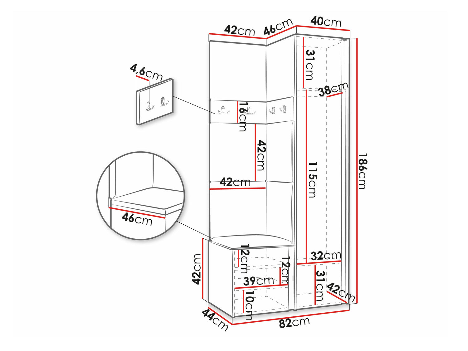 Spintos matmenys186 x 40 x 46 cm
