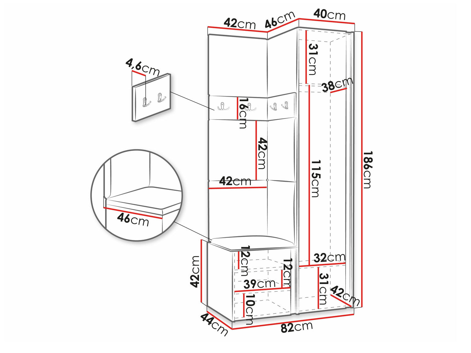 186 x 40 x 46 cm