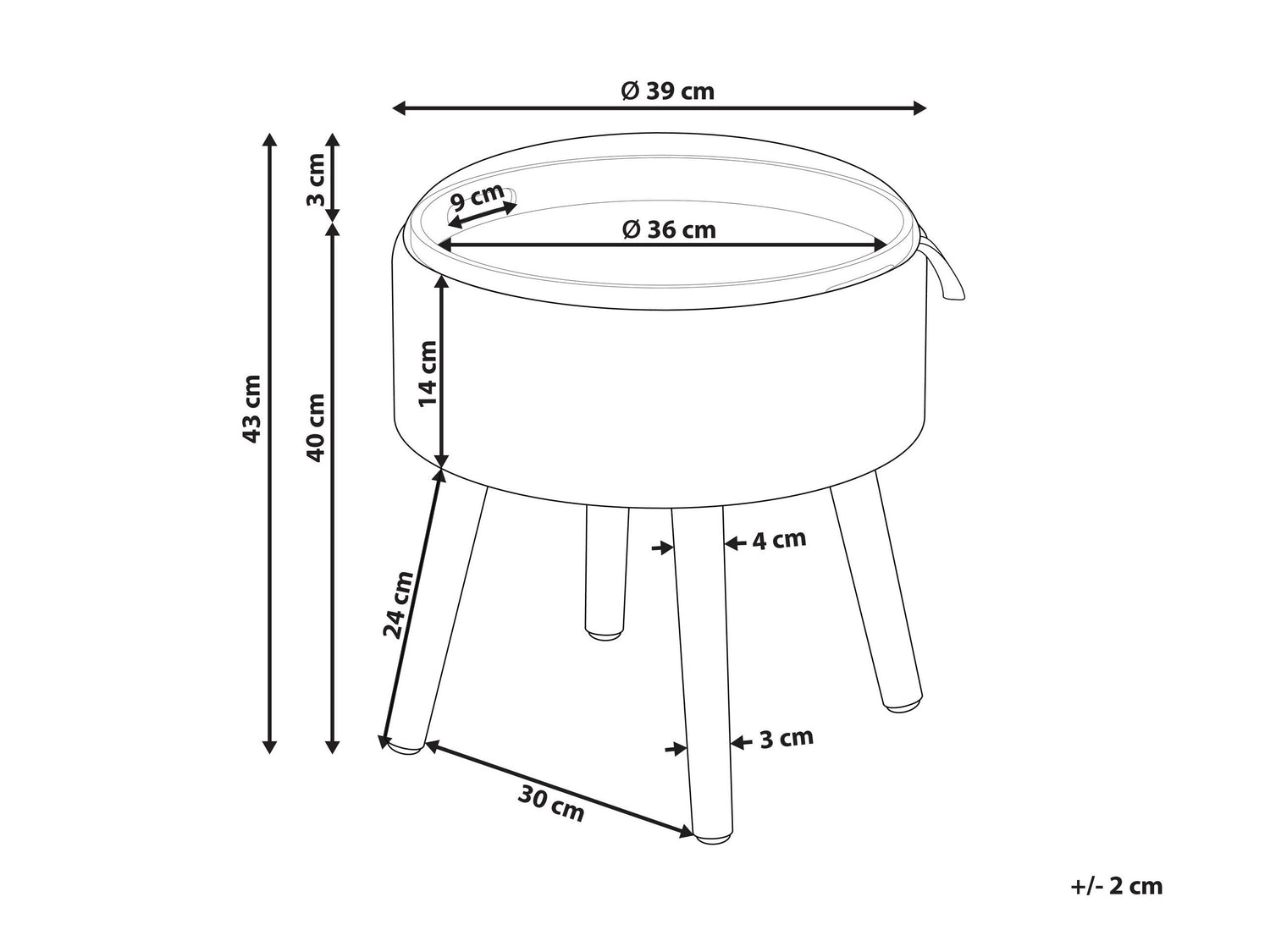 Aukštis43 cm