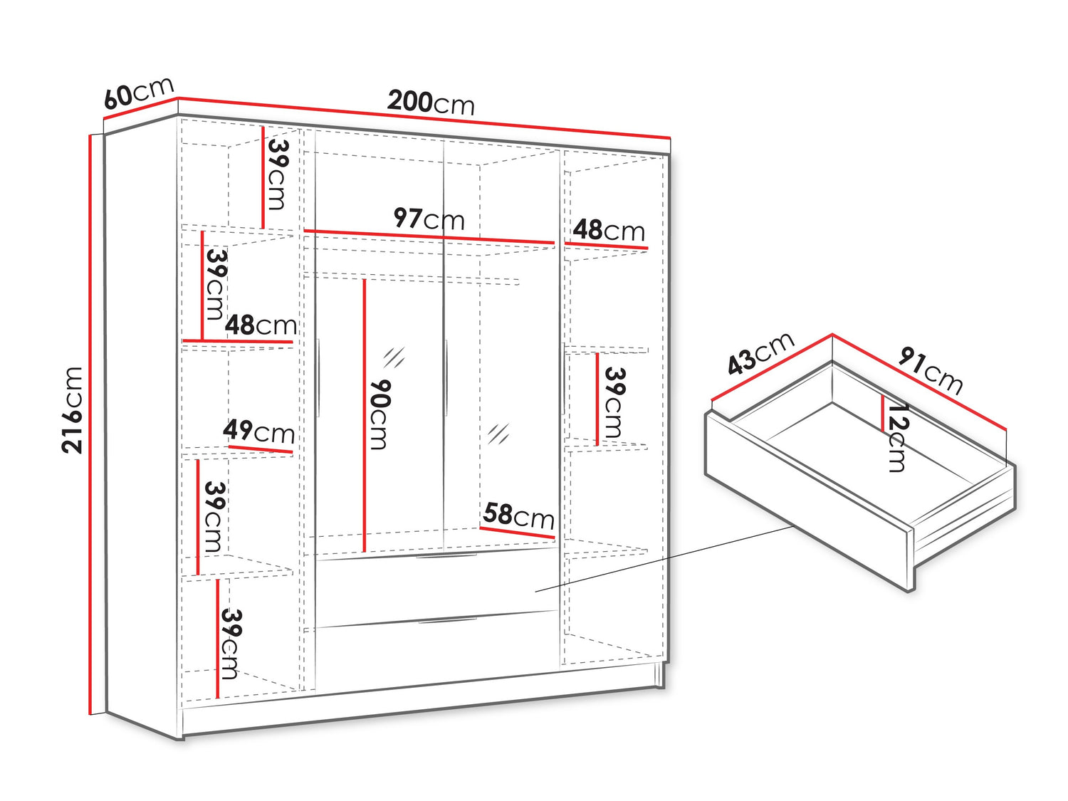 Aukštis216 cm