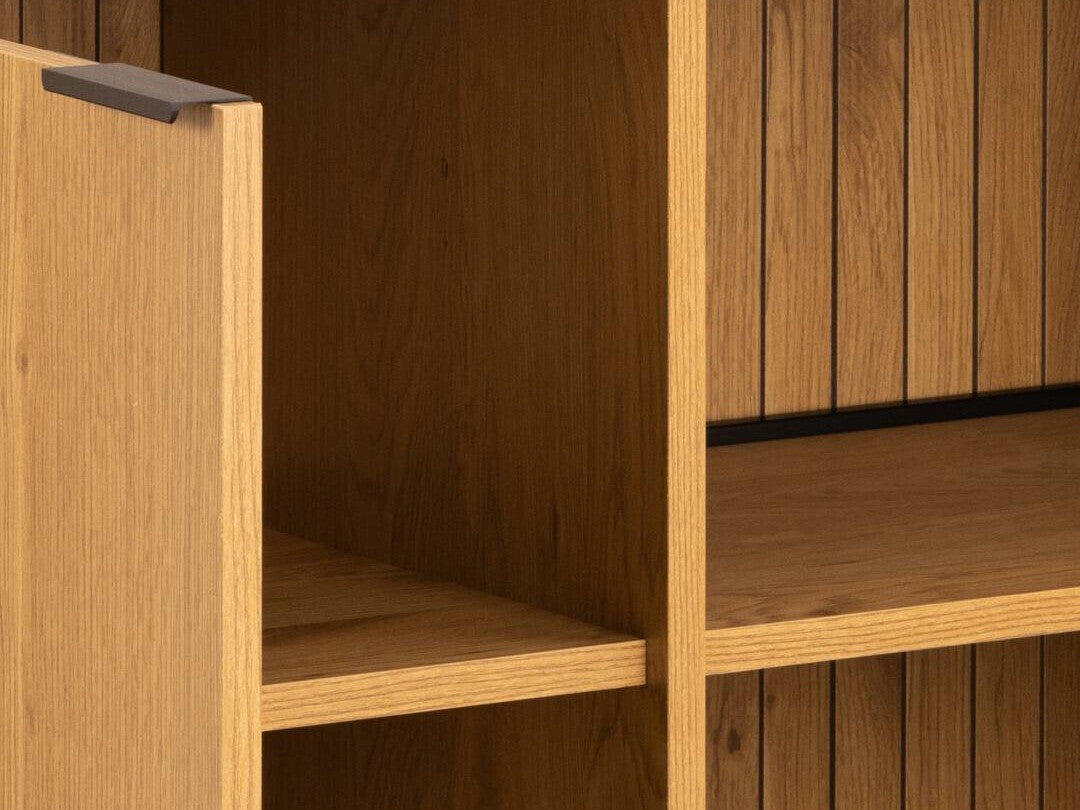 Lamelės yra baldų dekoracija, dažniausiai sudaryta iš vertikalių linijų, kurios formuojamos iš atskirų lamelių arba griovelių. Toks dizainas ne tik suteikia baldams elegantišką išvaizdą, bet ir prideda interjerui modernumo.