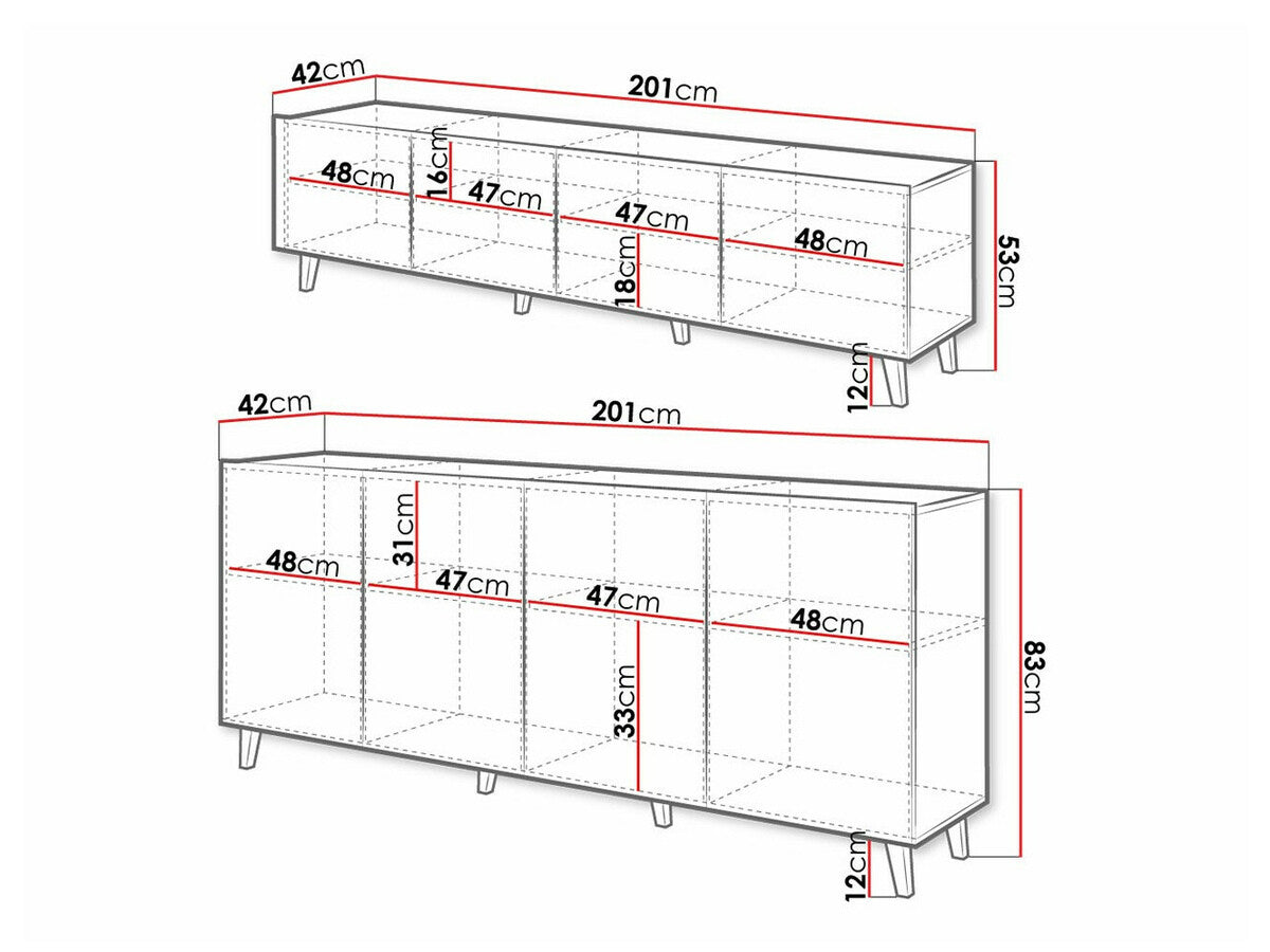 TV stalo matmenys53 x 201 x 42 cm