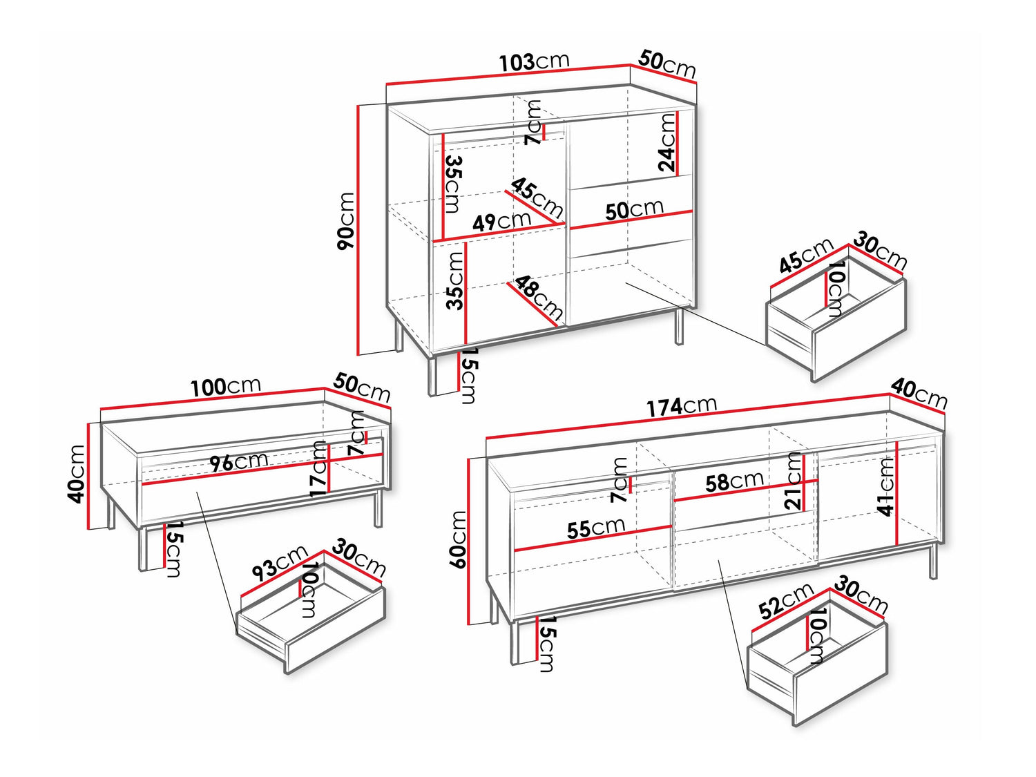 Komodos matmenys90 x 103 x 50 cm